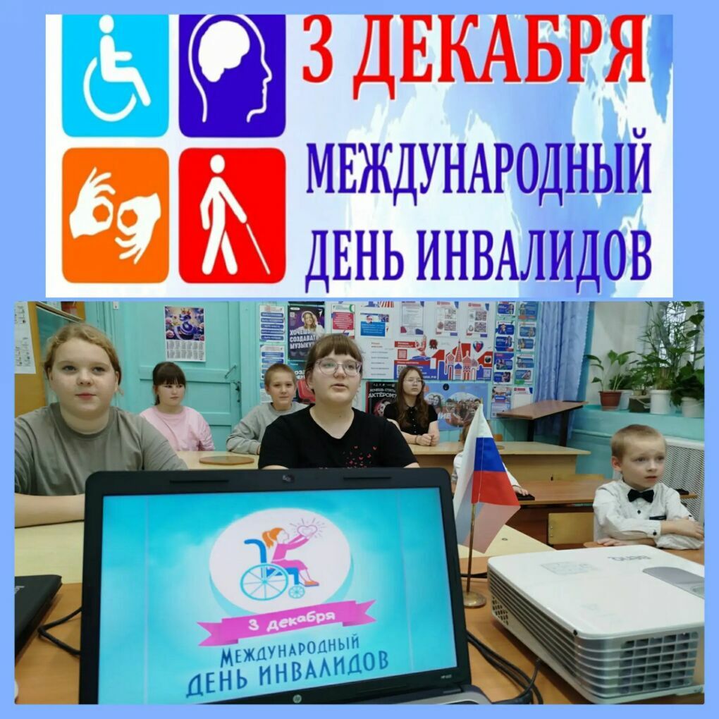 Учащиеся нашей школы приняли активное участие в мероприятиях, приуроченных ко Дню инвалидов. Проведен час общения «Давайте делать добрые дела» по формированию толерантного отношения к инвалидам. Социальный педагог Крылова Ольга Николаевна напомнила ребятам, что рядом с нами есть особенные люди с ограниченными возможностями здоровья. Несмотря на трудности, они ведут активный образ жизни – участвуют в конкурсах и фестивалях, показывают хорошие результаты на спортивных соревнованиях.